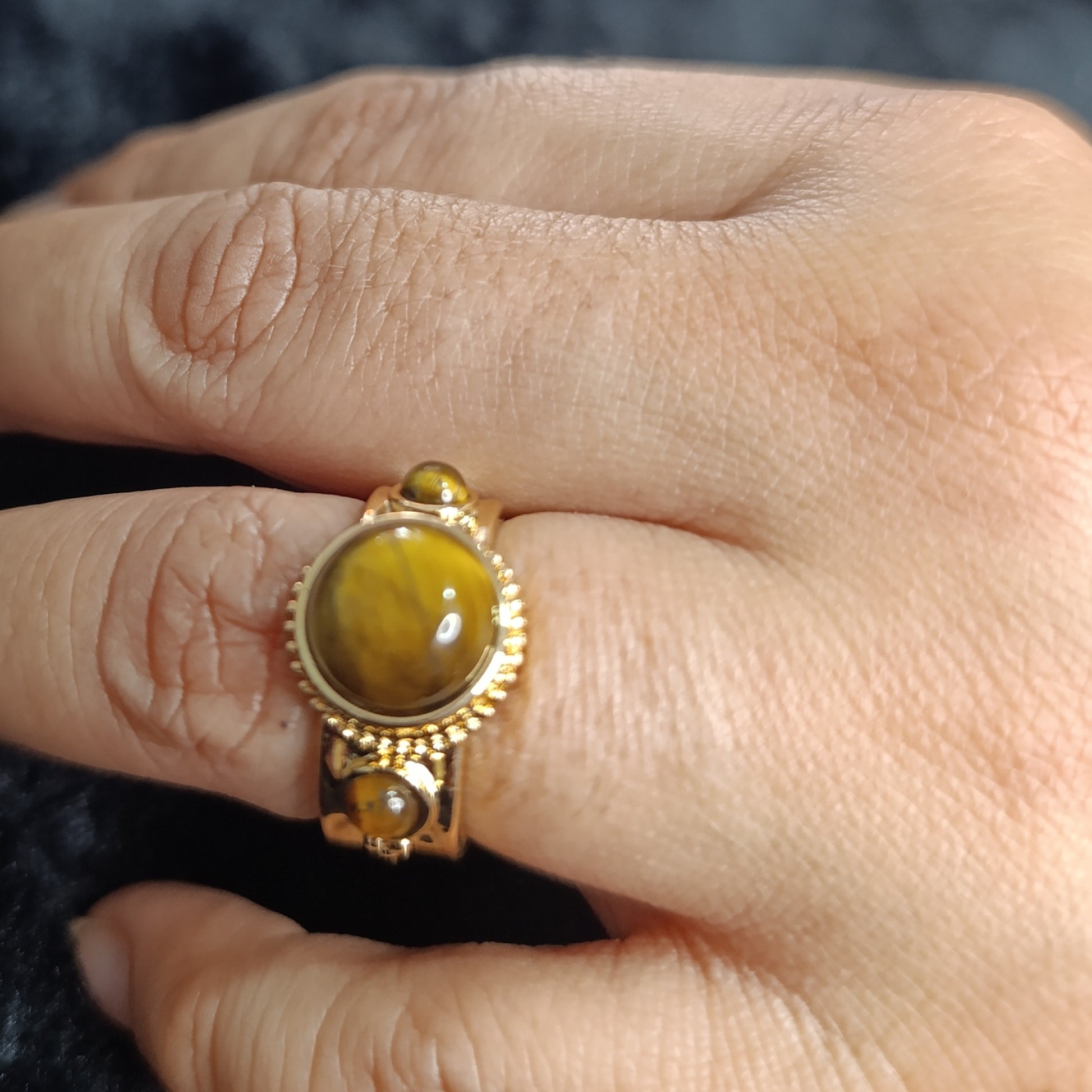 Anillo Dorado Ronda Ojo de Tigre Ajustable