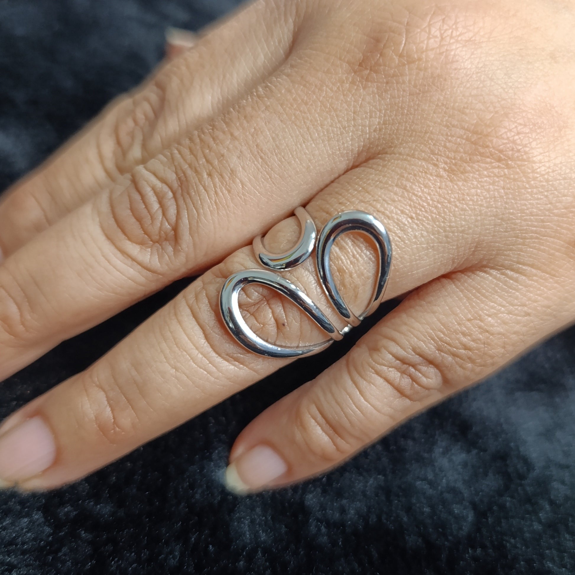 Anillo Platedo Pétalos Huecos Geométrico Ajustable