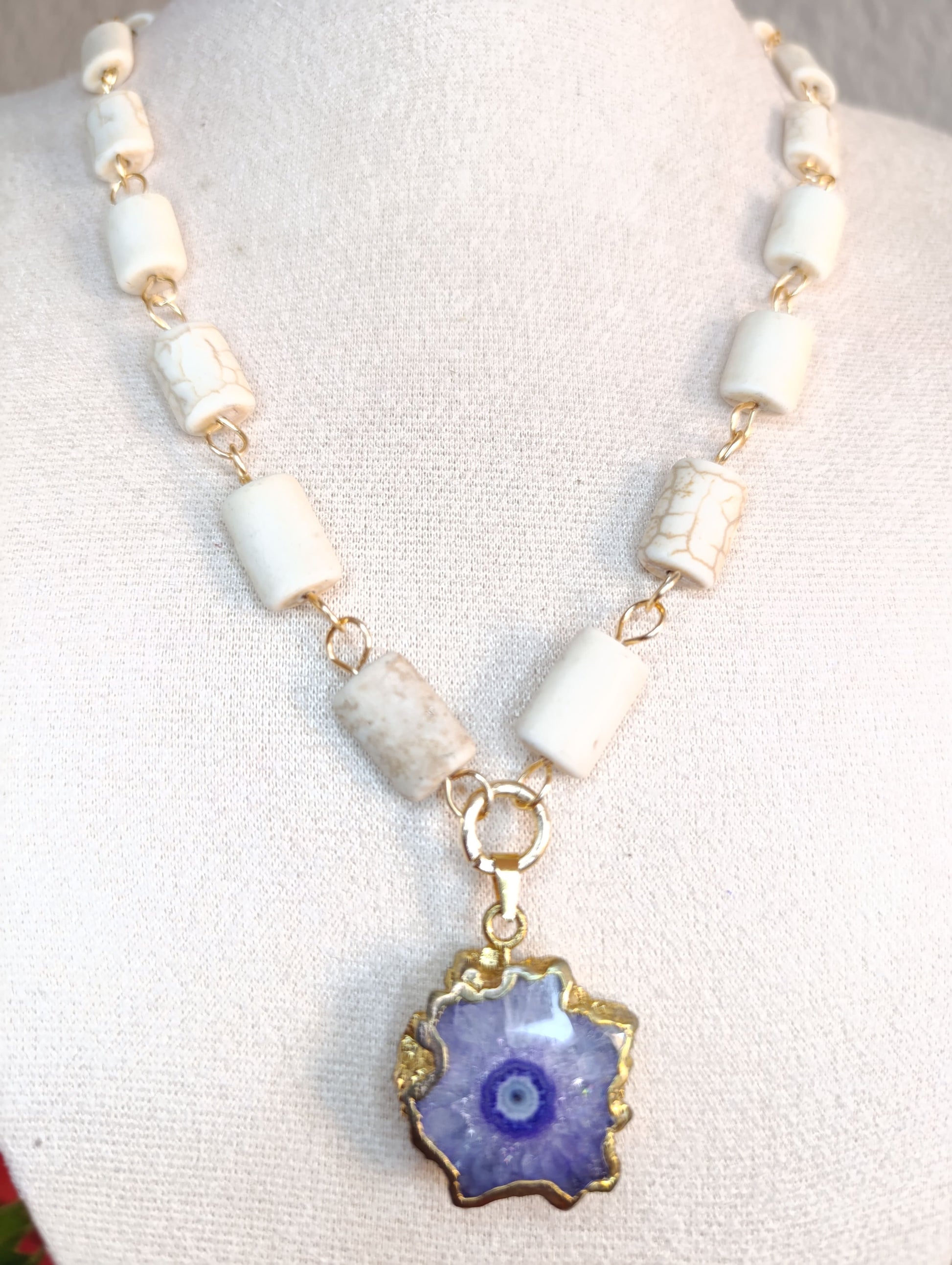 Collar Blanco y Dije Cuarzo Solar Natural