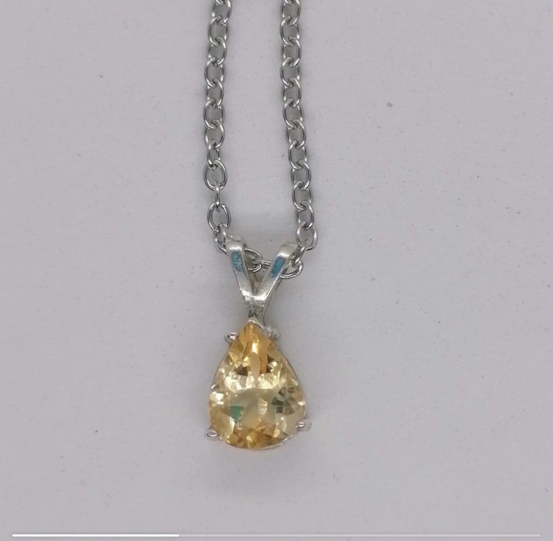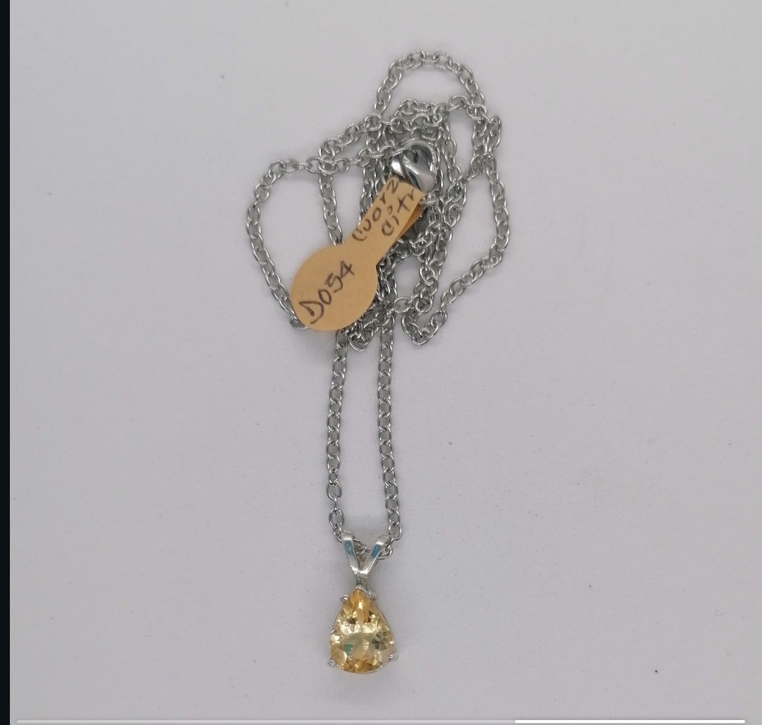 D054 Piedra Mineral Montada en Plata Ley 925, Cadena Acero Inoxidable