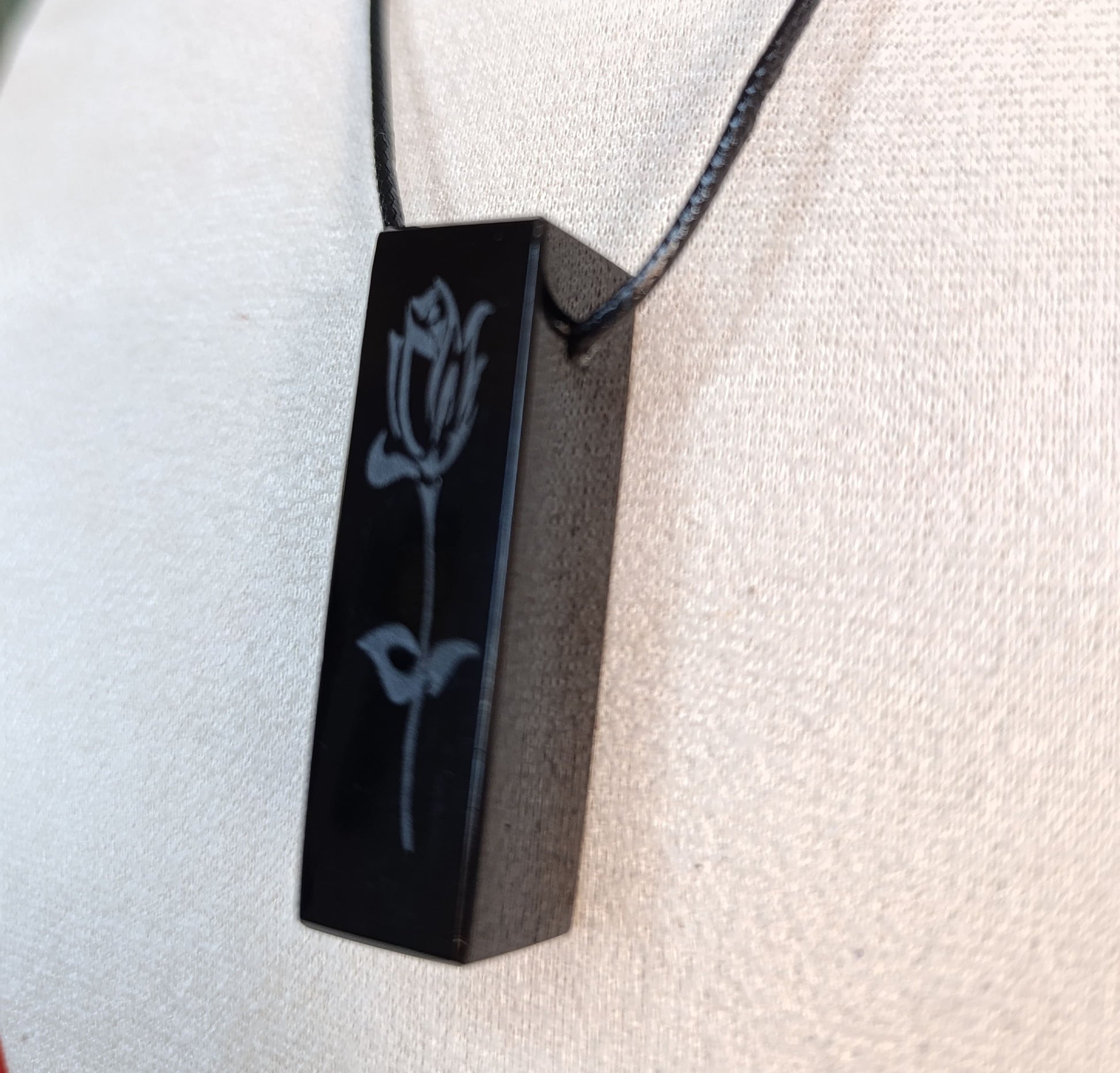 Dije Rectangular Obsidiana Grabada Rosa